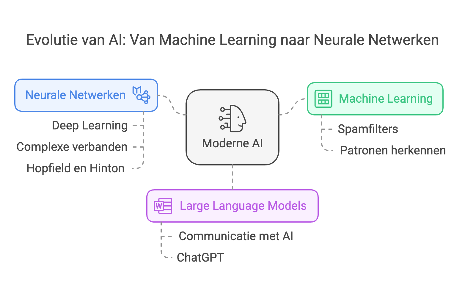 In 2024 ontvingen John Hopfield en Geoffrey Hinton de Nobelprijs voor Natuurkunde voor hun werk aan neurale netwerken. Deze systemen, geïnspireerd op het menselijke brein, maken Deep Learning mogelijk: een proces waarin AI zelfstandig leert door complexe verbanden te leggen, vergelijkbaar met hoe menselijke hersenen werken.
